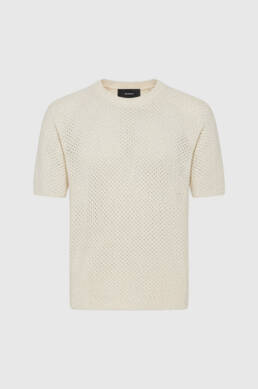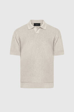 Polo Tricô em Ponto Crochê Texturizado Bege