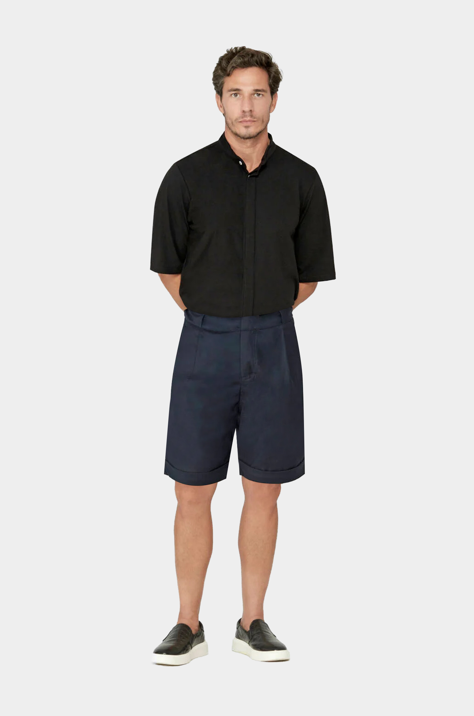 Reinterpretando a bermuda social clássica, que por vezes é rígida e desconfortável, este produto possui elementos esportivos funcionais como o entrepernas baixo e o cinto embutido do próprio tecido da bermuda. Conforto, elegância e versatilidade para qualquer ocasião.