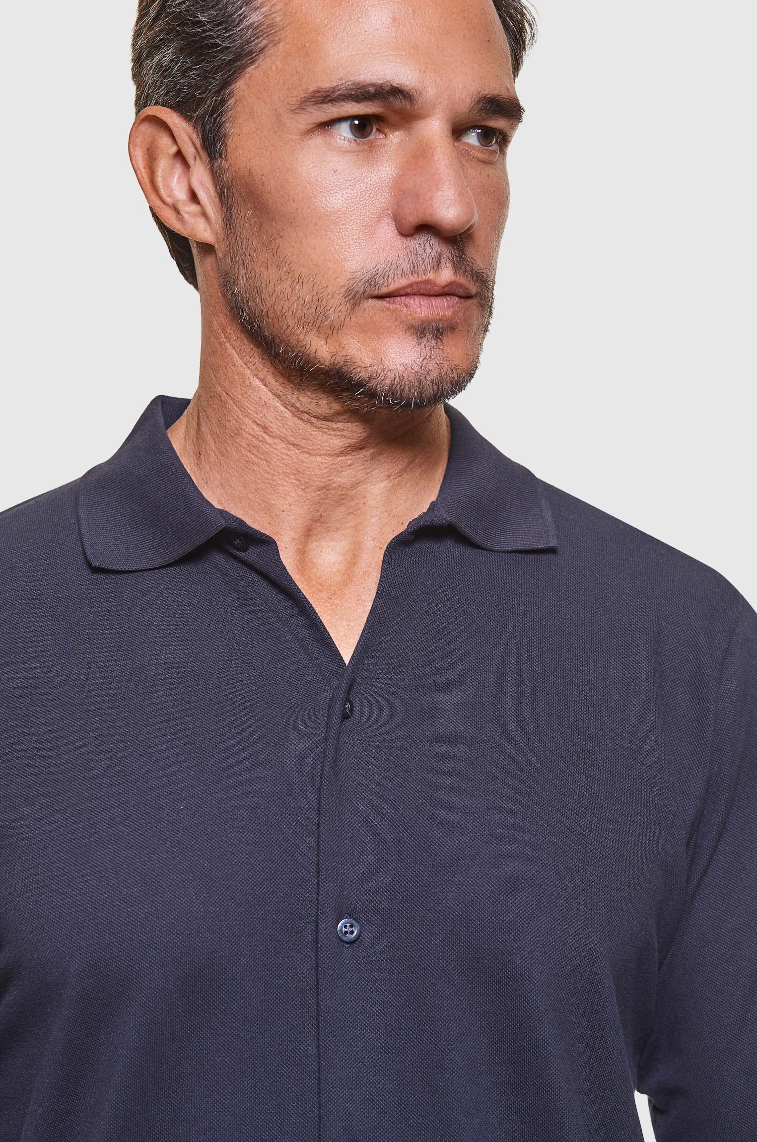 A camisa Senplo em malha piquet soft tem estrutura que não marca o corpo, elasticidade que acompanha o movimento e presença que transmite boa impressão.
