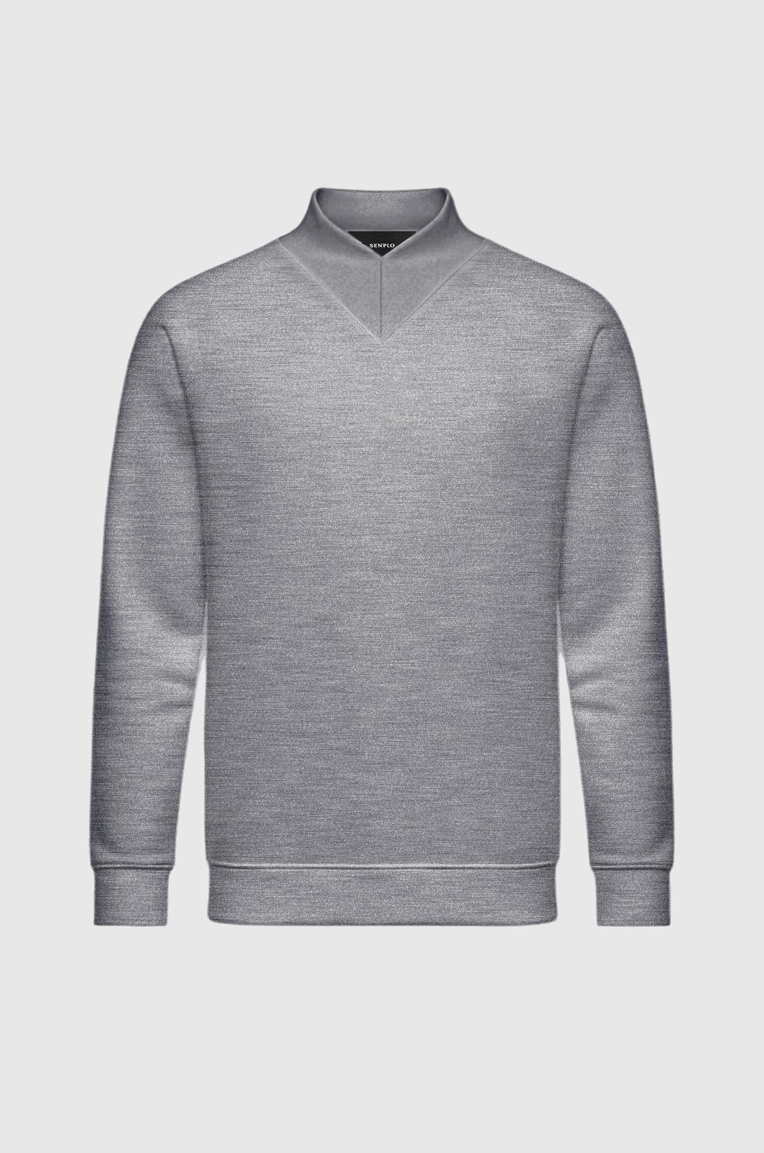 O moletom decote V alto tem inspiração nos tricôs dos anos 50, com decote alto em ribana canelada que trás um visual imponente e costuras rebatidas inspiradas na alfaiataria, ideal para pessoas que valorizam uma peça bem construída e com um design atemporal.