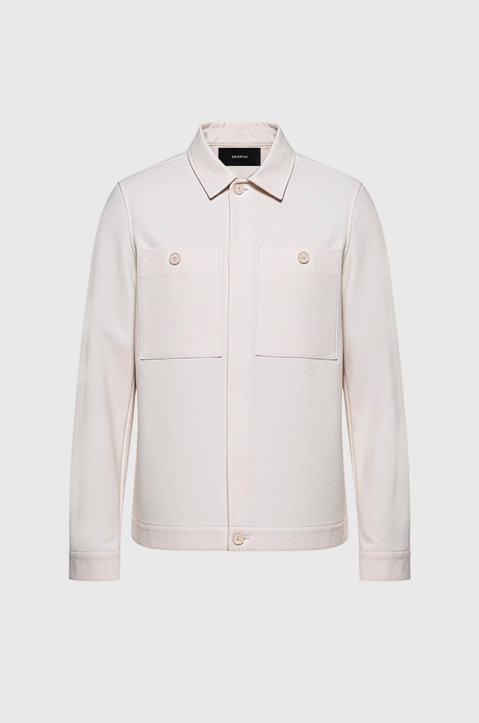 Overshirt em sarja premium com leve textura e acabamento acetinado.